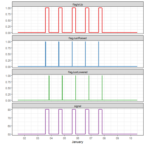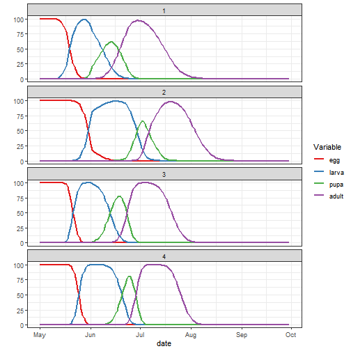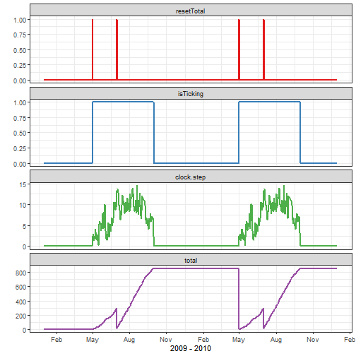 You achieve this behaviour by setting the cycle flag TRUE (it defaults to FALSE). If cycle is TRUE then ignoreYear will always be forced to TRUE as well, since the year registered in the input file has become irrelevant. Let's try it: