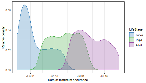 If you model runs on a finer time scale, you may have records at an hourly interval, or even down to seconds, corresponding to the smallest time step supported by Calendar (1 second). You may also have records at irregular intervals with a time stamp of date and time. In any case, you provide the time of the day in a separate column, as exemplified by the file copenhagen-may-hourly.txt⏷, which contains hourly data for the first half of May:
