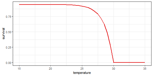 The daily loss rate \(r \in [0;1]\) is found by multiplying the aphid index \(A\) by \(E\):