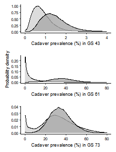 | maxCadaverPrevalenceGS | double | 0.0 Zadoks | Crop growth stage at peak cadaver prevalence before GS80 |