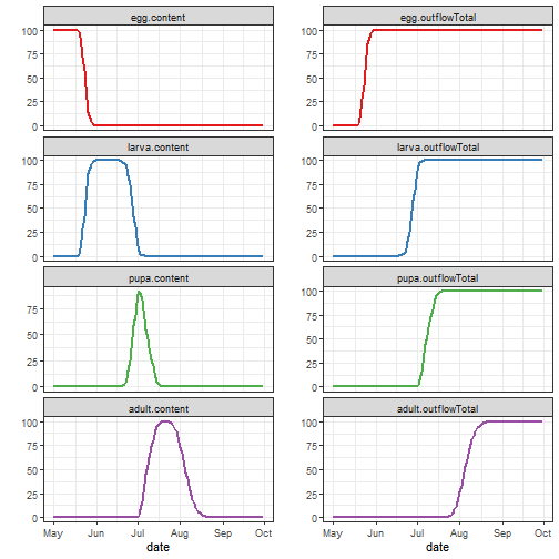 > list butterfly/egg/time pDayDegrees time .T = 10.5 <- sim/weather[Tavg] .timeStepDays = 1.0 <- sim/calendar[timeStepDays] .resetTotal = FALSE const .isTicking = TRUE const .T0 = 5.0 const .Topt = 100.0 const .Tmax = 100.0 const >step = 5.5 PTU >total = 1605.7 PTU